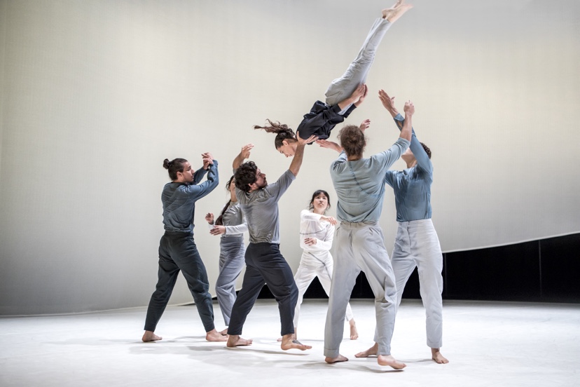 Through accumulation, variation, and repetition of trajectories and paths, Made of Space explores a rigorous spatial composition, forming a continuous and infinite space. As a score of incessant succession of routes, of sustained repetition, of continuous variation, and the geometric occupation of space, a group of performers, together with the musicians, are carried away by the energy and dynamism that unites them. A network in which they share the axis continuously through paths that serve as the basis for an infinite number of variations, pursuing the constant challenge of gravity yet surrendering to it.